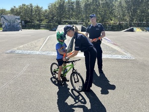 Tak też było dziś, kiedy jaworzniccy profilaktycy odwiedzili Pumptruck w Parku Podłęże. Policjanci rozmawiali tam z dziećmi i młodzieżą, uświadamiając ich jednocześnie, że skatepark to nie plac zabaw! Jest to miejsce przeznaczone wyłącznie dla rolkarzy, deskorolkarzy oraz miłośników hulajnóg i rowerów BMX, którzy na wielu specjalnie przygotowanych do tego przeszkodach wykonują różne wymyślne triki. Przypominali, że bardzo ważne jest używanie kasku ochronnego i ochraniaczy. Jaworzniccy mundurowi tłumaczyli, że podczas korzystania ze skateparku nie jesteśmy sami! Należy uważać na innych i dbać o bezpieczną jazdę, aby z uśmiechem na twarzy wykonywać kolejne triki. Dlatego pamiętajmy o zasadach, których należy przestrzegać: