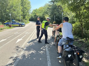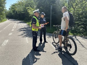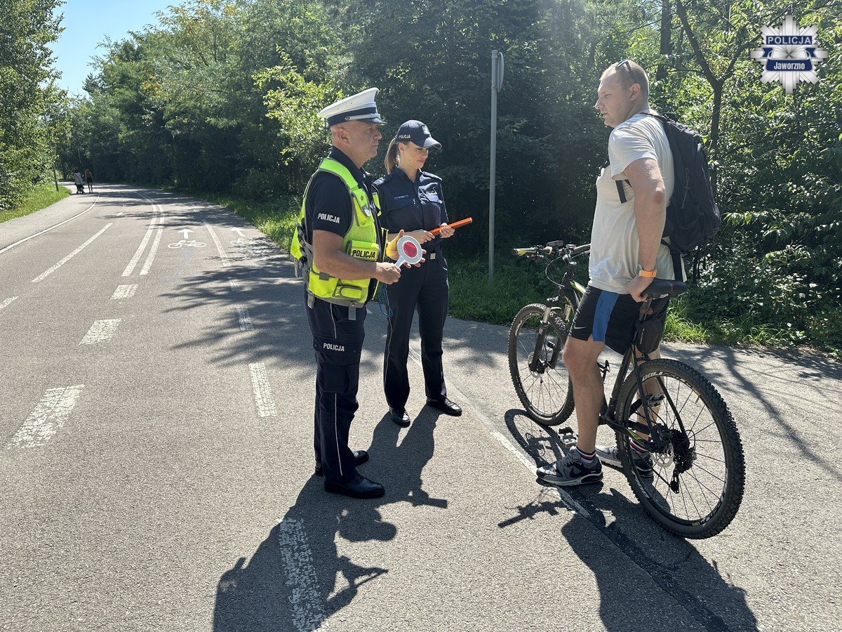 W ubiegłą środę (13.08.2025 r.) policjanci z Jaworzna prowadzili działania prewencyjne ukierunkowane na bezpieczeństwo osób korzystających z jednośladów. Akcja odbyła się na Welostradzie w Jaworznie i miała charakter edukacyjny. Mundurowi zachęcali rowerzystów i użytkowników hulajnóg do stosowania kasków ochronnych oraz elementów odblaskowych, które zwiększają widoczność i mogą uratować życie w razie niebezpiecznej sytuacji na drodze. Przypominali, że bezpieczeństwo w ruchu drogowym zależy w dużej mierze od samych uczestników. Działania prowadzone były przez Zastępcę Naczelnika Wydziału Ruchu Drogowego KMP w Jaworznie podinsp. Tomasza Obarskiego i podkom. Annę Tymę z Zespółu do spraw Nieletnich i Patologii.