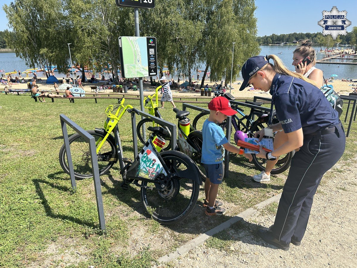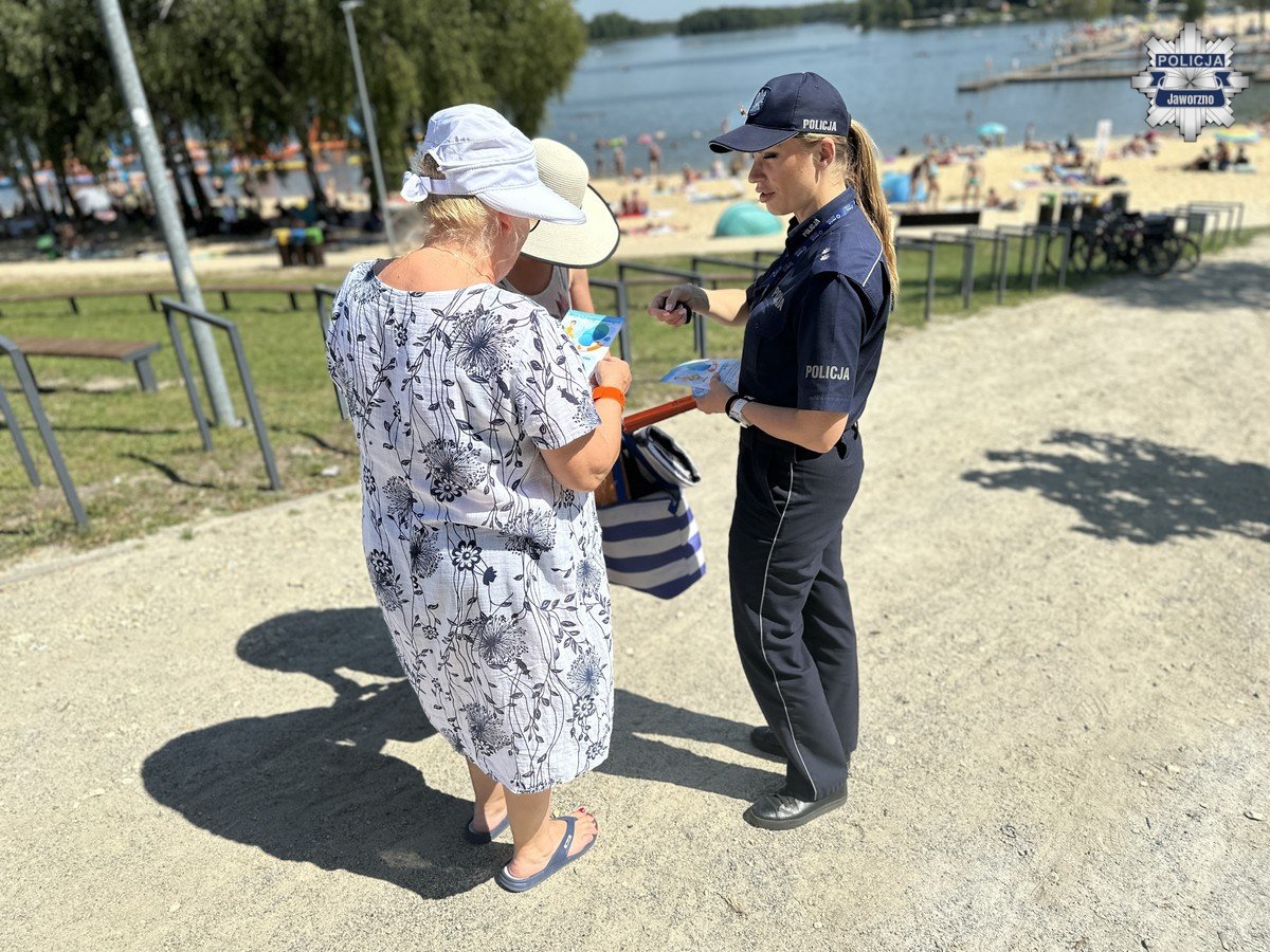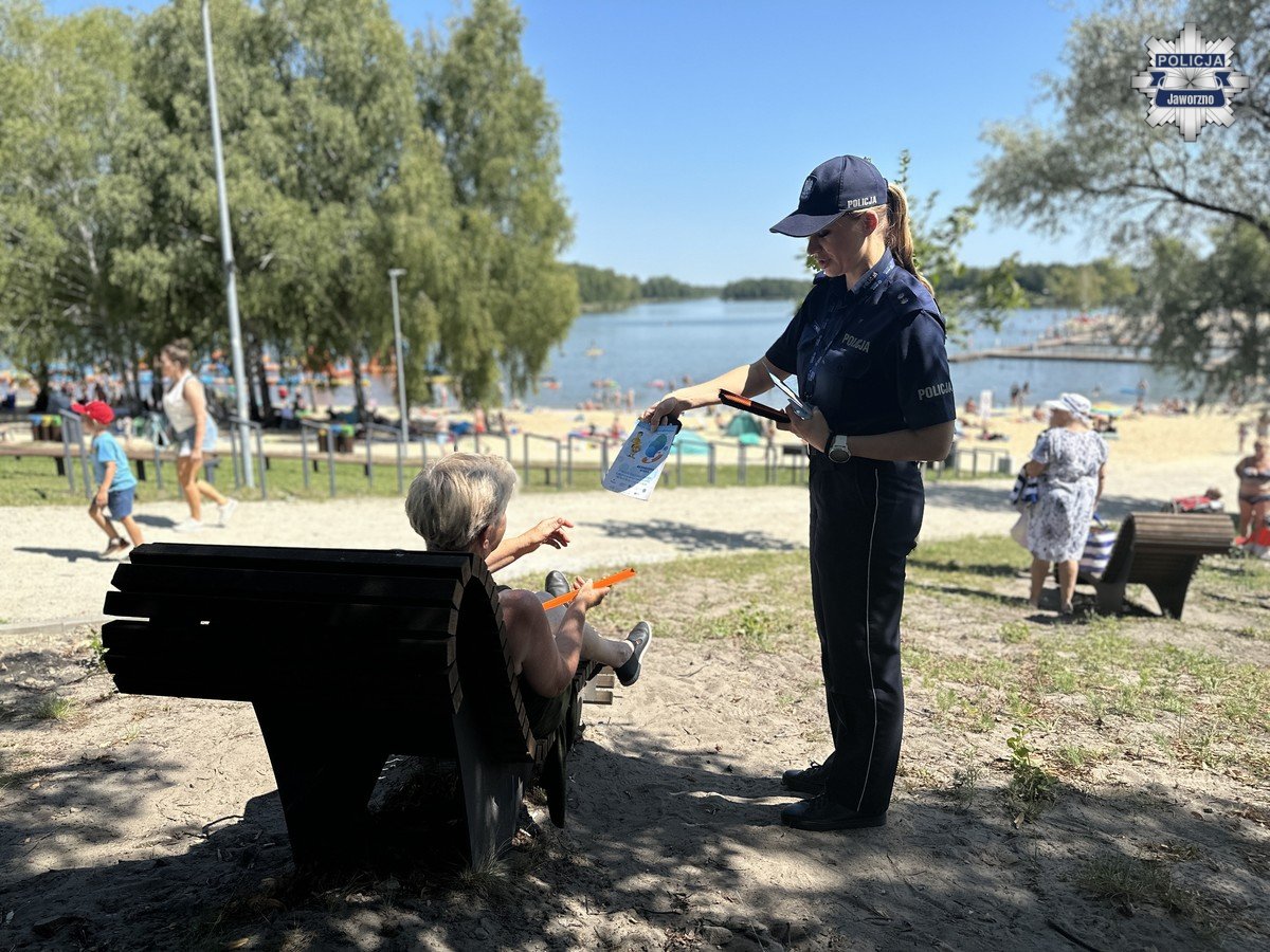 Trwające wakacje zachęcają do korzystania z wypoczynku nad wodą, dlatego jaworzniccy policjanci cyklicznie prowadzą działania profilaktyczne w ramach akcji "Kręci mnie bezpieczeństwo w lecie". W ubiegłym tygodniu, policjantka z Zespołu do spraw Nieletnich i Patologii jaworznickiej komendy rozmawiała z wypoczywającymi, zwracając szczególną uwagę na zagrożenia, na które narażone są osoby spędzające wolny czas w rejonie akwenu Sosina.