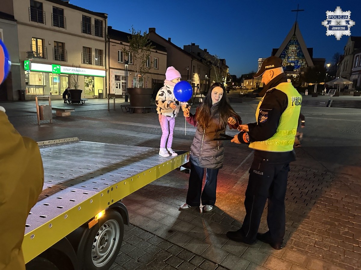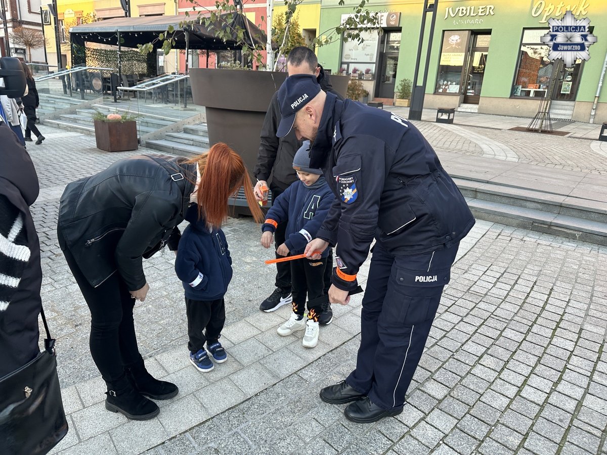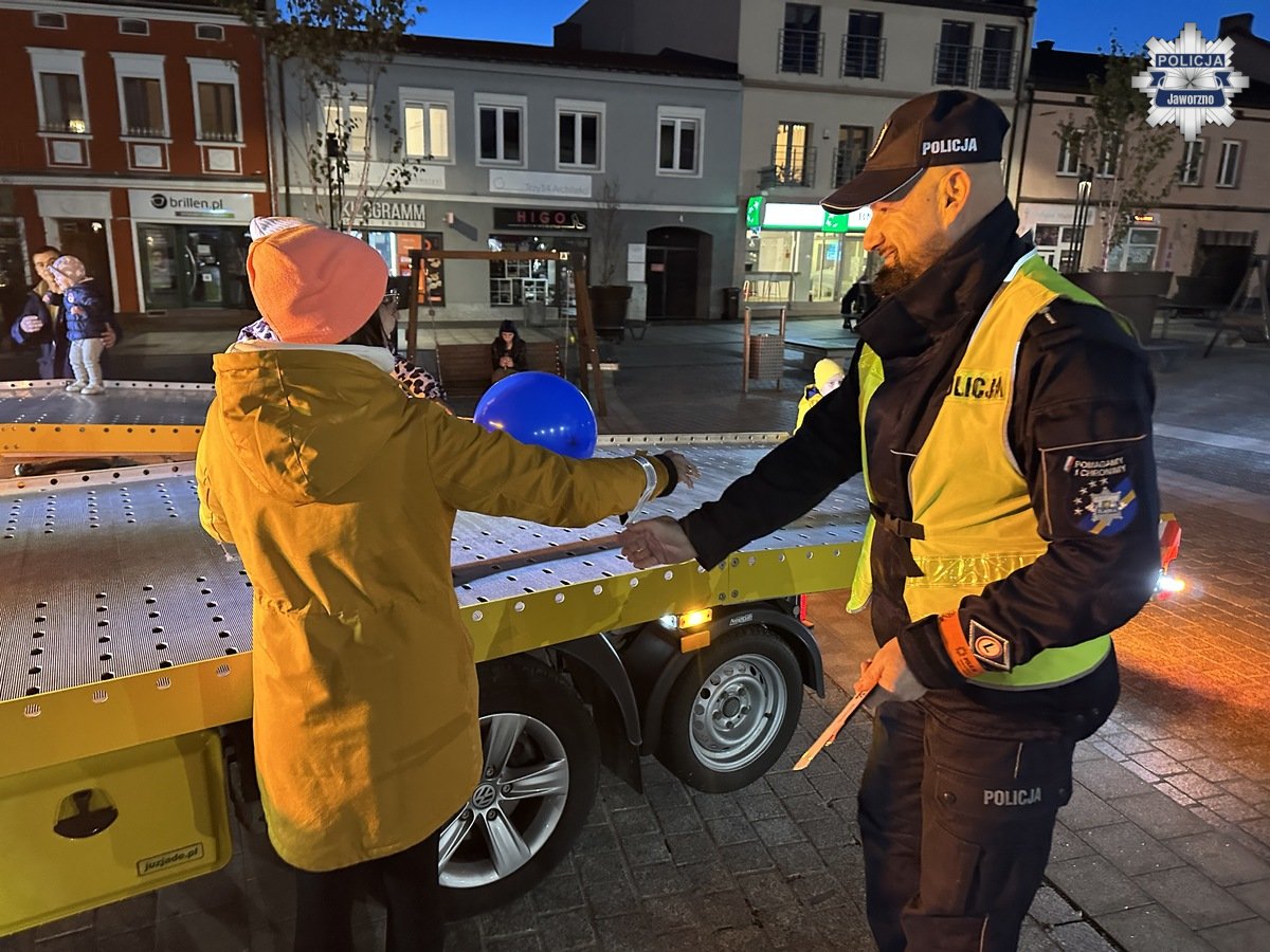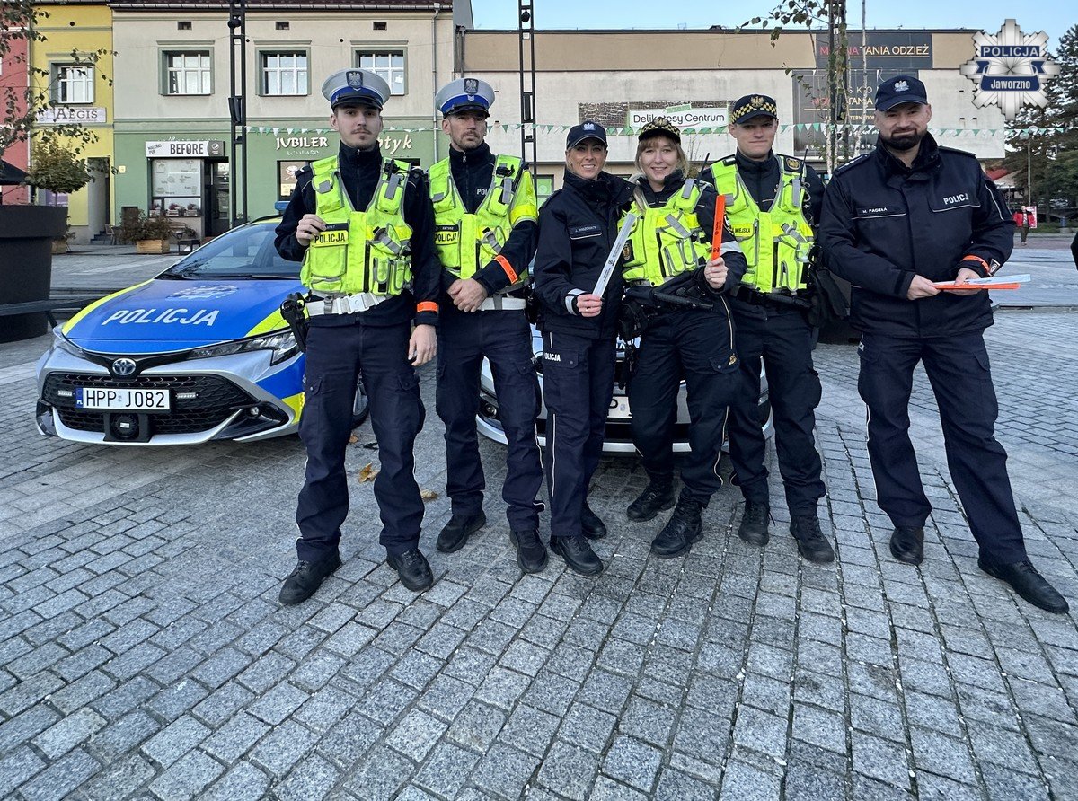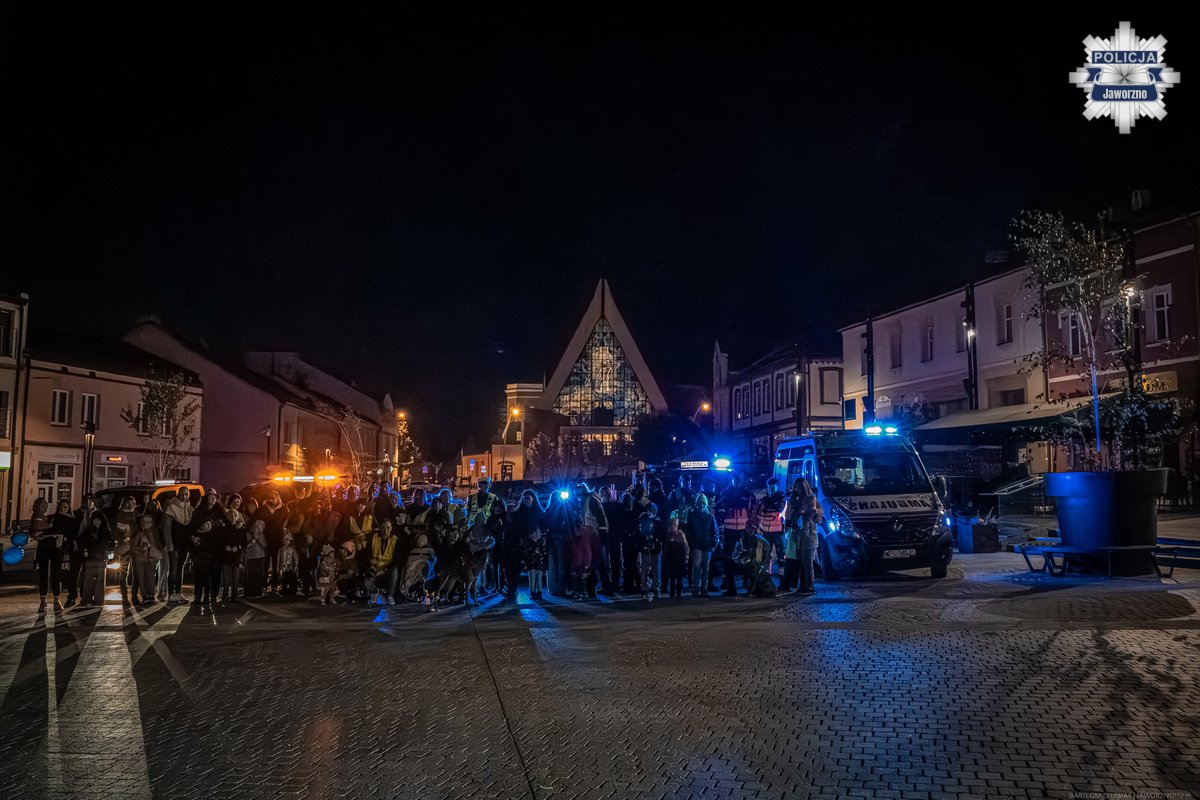 Gdy zapadł zmierzch, wszystkie służby – Policja, Straż miejska i Pogotowie – włączyły sygnały świetlne, symbolicznie pokazując, jak duże znaczenie ma widoczność po zmroku.Takie inicjatywy to nie tylko forma profilaktyki, ale również doskonała okazja do integracji z mieszkańcami. Policjanci z Jaworzna chętnie rozmawiali z uczestnikami wydarzenia, odpowiadali na pytania i zachęcali do noszenia odblasków na co dzień. Noszenie odblasków to nie wstyd, to rozsądny wybór, który może uratować życie.