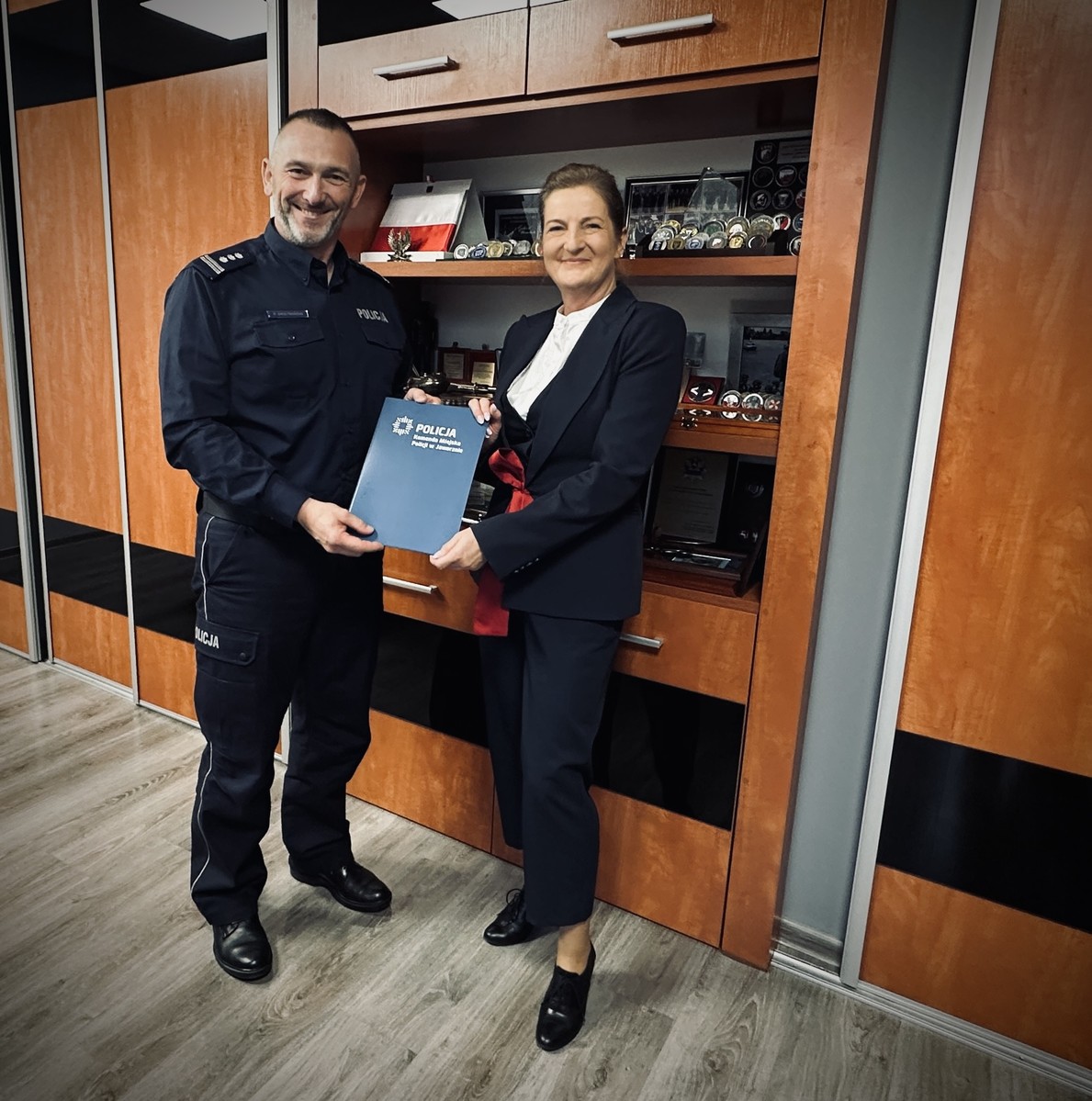 W piątek (24.10.2025 roku) Komendant Miejski Policji w Jaworznie, insp. Paweł Dratwiński, spotkał się z dyrektor jednej z jaworznickich placówek banku, by osobiście podziękować jej za wzorową współpracę i odpowiedzialną postawę, która przyczyniła się do zatrzymania 18-letniego „odbieraka” działającego na terenie miasta. Tego rodzaju współpraca jest niezwykle cenna. Dzięki odpowiedzialnej postawie i zaangażowaniu pracowników banku udało się zapobiec przestępstwu i ochronić mieszkankę naszego miasta przed utratą oszczędności, które zamierzała przekazać oszustom. Takie działania są doskonałym przykładem społecznej odpowiedzialności i skutecznej współpracy Policji z innymi instytucjami na rzecz bezpieczeństwa – podkreślił insp. Paweł Dratwiński, Komendant Miejski Policji w Jaworznie.