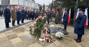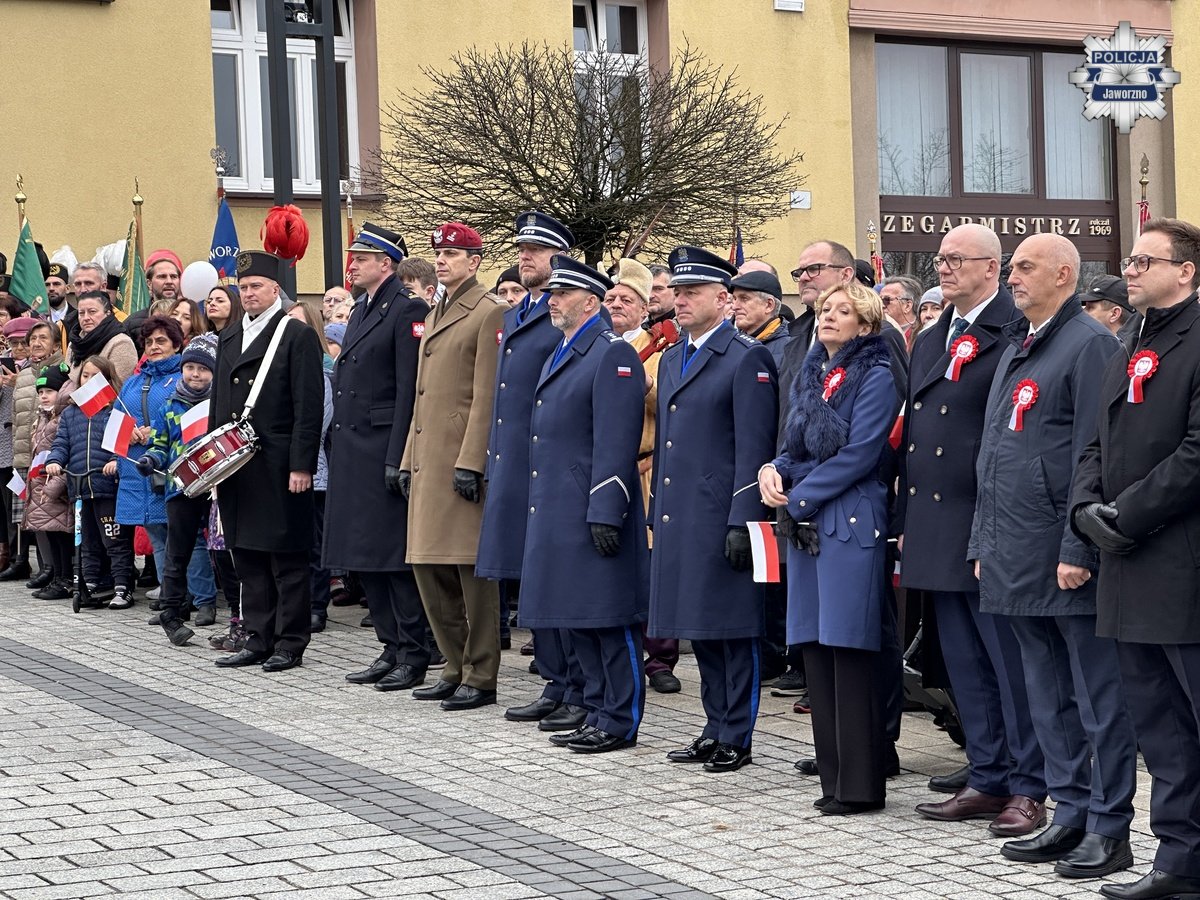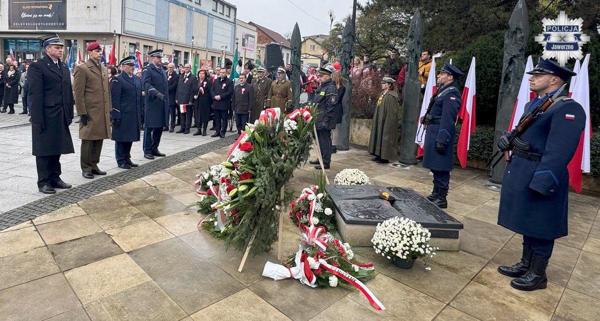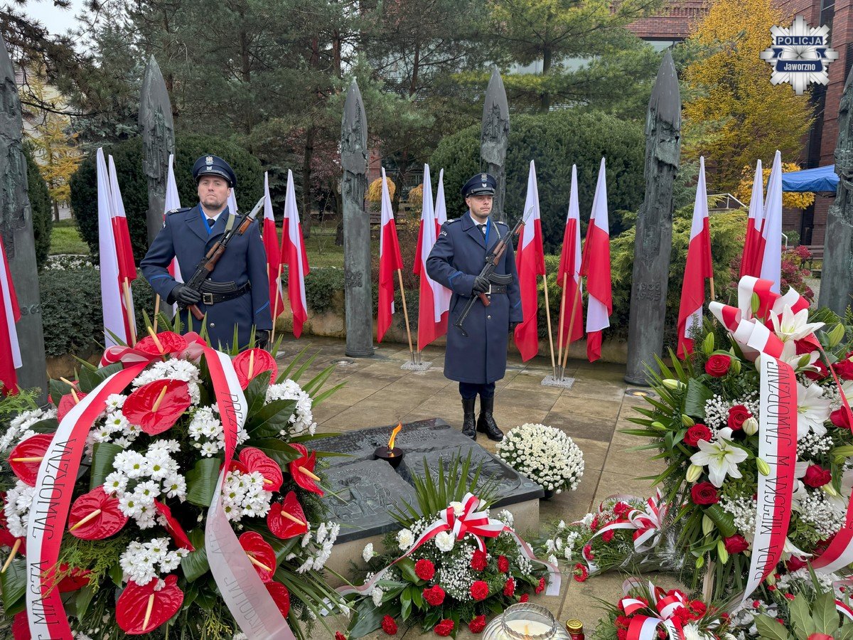 Oddając hołd wszystkim, którzy na przestrzeni dziejów walczyli o wolność i niepodległość Polski Komendant Miejski Policji w Jaworznie inspektor Paweł Dratwiński złożył kwiaty pod Pomnikiem Niepodległości w obecności: Komendanta Miejskiego Policji w Rudzie Śląskiej insp.dr Piotra Uwijały, Szefa Wojskowego Centrum Rekrutacji w Katowicach ppłk Michała Napierały, Komendanta Miejskiego Państwowej Straży Pożarnej w Jaworznie mł.bryg. Macieja Skulicha oraz Przewodniczącego Zarządu Terenowego NSZZ Policjantów w Jaworznie nadkom. Sebastiana Ciołczyka.