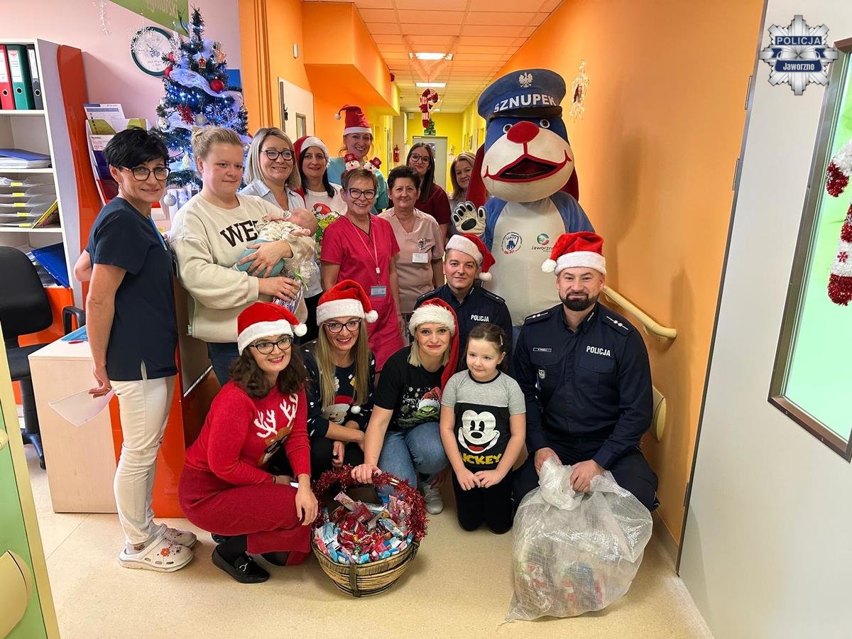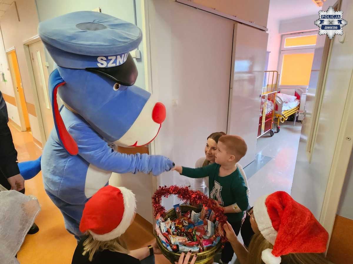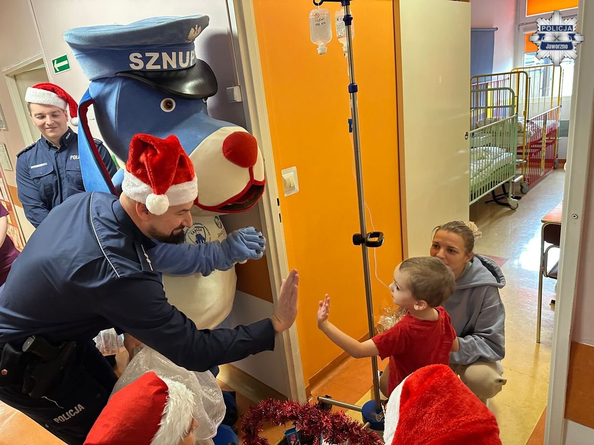 Z okazji Mikołajek policjanci z Komendy Miejskiej Policji przygotowali wyjątkową niespodziankę dla dzieci hospitalizowanych na oddziale chirurgii dziecięcej oraz oddziale pediatrycznym w jaworznickim szpitalu. Funkcjonariusze pojawili się z prezentami, a towarzyszył im uwielbiany przez najmłodszych Sznupek – policyjny miś, który wręczał upominki i dbał o to, by na twarzach pacjentów pojawiały się uśmiechy. Obecność maskotki sprawiła dzieciom ogromną radość, a spotkanie stało się dla nich miłą odskocznią od codziennych trudów leczenia. Dla młodych pacjentów trafiły słodycze, maskotki i inne upominki, które zostały zakupione z środków zebranych przez funckjonariuszy i pracwnicków cywilnych jaworznickiej komendy Policji. Uśmiech na twarzach dzieci to najcenniejsze podziękowanie za poświęcony czas i zaangażowanie.