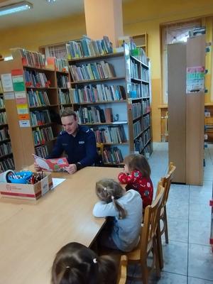 Spotkanie przebiegło w radosnej, przedświątecznej atmosferze, a dzieci z dużym zainteresowaniem słuchały czytanych opowieści. Obecność policjanta była również doskonałą okazją do pokazania najmłodszym, że funkcjonariusze Policji są osobami otwartymi, życzliwymi i zawsze gotowymi do pomocy.