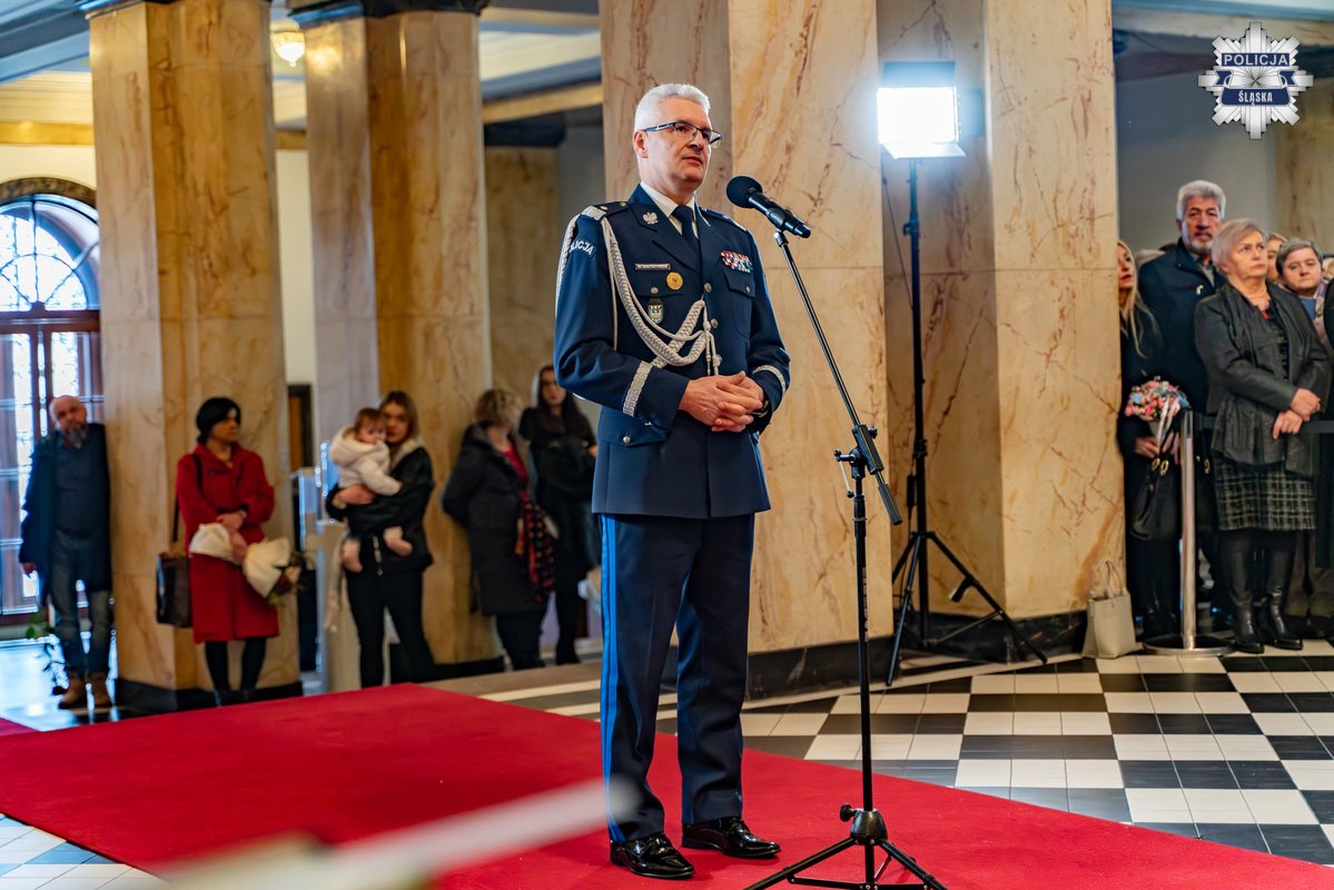 W ubiegłym tygodniu w reprezentacyjnym Westybulu Śląskiego Urzędu Wojewódzkiego w Katowicach, odbyło się pierwsze w 2026 roku uroczyste ślubowanie nowo przyjętych policjantów. Rotę ślubowania przyjął Komendant Wojewódzki Policji w Katowicach nadinsp. Mariusz Krzystyniak, a w wydarzeniu uczestniczył Wojewoda Śląski Marek Wójcik, który wraz z Komendantem podkreślił rangę policyjnej służby i złożył życzenia odwagi, wytrwałości oraz satysfakcji z pracy na rzecz bezpieczeństwa mieszkańców województwa.