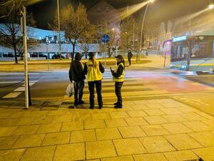 Policjanctki rozdawały mieszkańcom Jaworzna elementy odblaskowe oraz przypominały, jak istotne jest ich noszenie – nie tylko poza obszarem zabudowanym, gdzie jest to obowiązkowe, ale również w terenie miejskim. Nawet niewielki odblask znacząco zwiększa widoczność pieszego dla kierowcy, który dzięki temu ma więcej czasu na reakcję i może odpowiednio wcześnie zahamować.