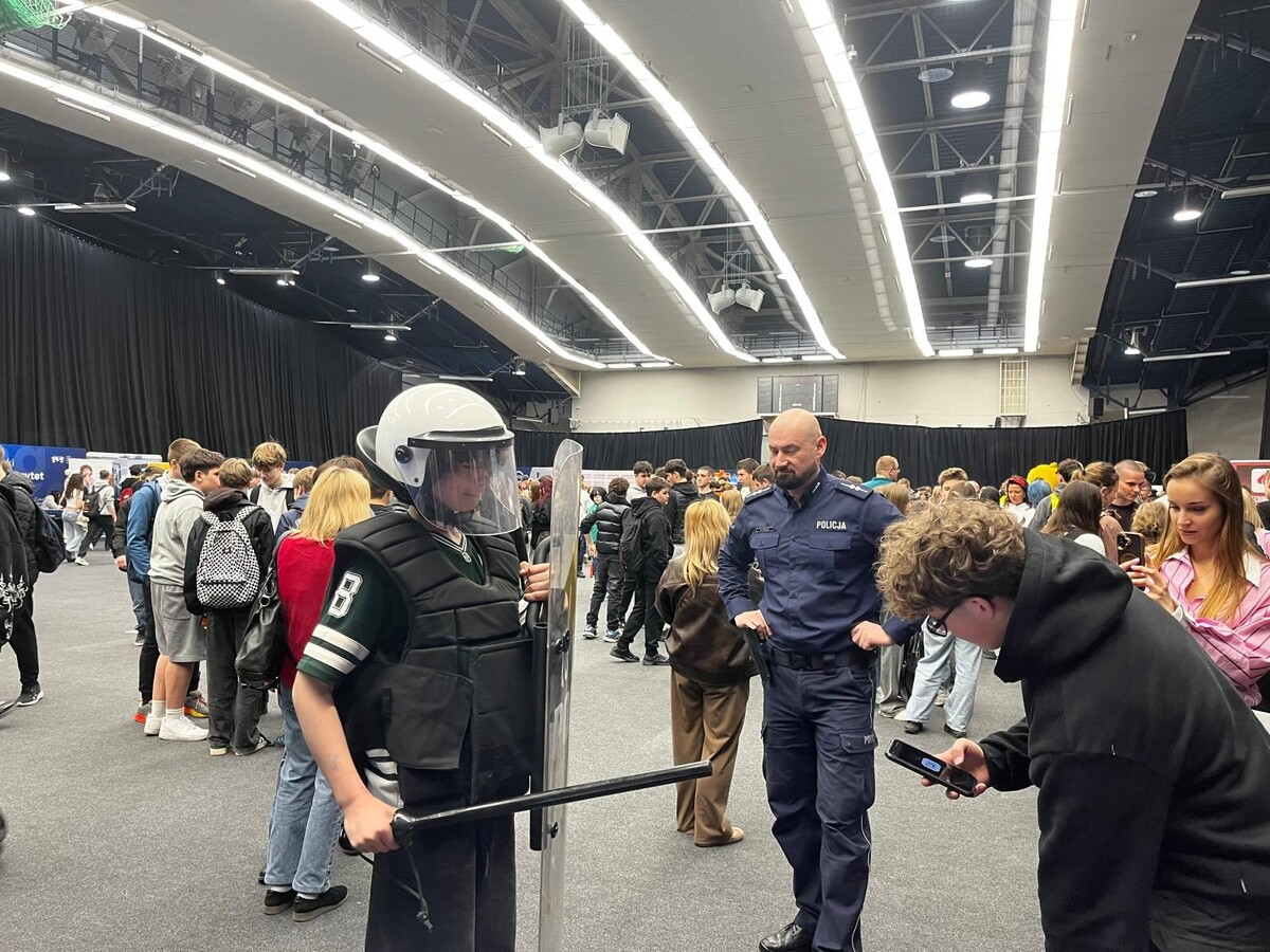 Stoisko policyjne cieszyło się dużym zainteresowaniem młodzieży. Uczniowie mieli możliwość zapoznania się ze sprzętem wykorzystywanym przez funkcjonariuszy, a także przymierzenia elementów wyposażenia bojowego. Była to doskonała okazja, aby w praktyczny sposób przybliżyć specyfikę służby w Policji.