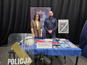 Pracownik i policjantka z Wydziału Kadr udzielały szczegółowych informacji na temat procesu rekrutacji, przedstawiając wymagania oraz dokumenty niezbędne do wstąpienia do służby. Zainteresowani mogli dowiedzieć się, jak wyglądają kolejne etapy kwalifikacji oraz jakie możliwości rozwoju zawodowego oferuje Policja.