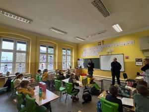 Policjantka z Zespołu d/s Patologii, Profilaktyki i Nieletnich Komendy Miejskiej Policji w Jaworznie wspólnie z dzielnicowym przeprowadzili spotkanie profilaktyczne z uczniami. Prelekcja odbyła się w Szkole Podstawowej nr 21 w Jaworznie w ramach zbliżającej się akcji „Bezpieczne Ferie 2026”. Mundurowi rozmawiali z dziećmi o zasadach bezpieczeństwa podczas zimowego wypoczynku.