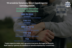 10 września obchodzony jest Światowy Dzień Zapobiegania Samobójstwom. Dzień ten został ustanowiony w 2003 roku przez Międzynarodowe Stowarzyszenie Zapobiegania Samobójstwom (IASP) w celu zwrócenia uwagi na problem samobójstw i promowania działań na rzecz jego zapobiegania. O przeciwdziałaniu tym tragediom, zrozumieniu ich przyczyn i poszukiwaniu rozwiązań mówi się bowiem rzadziej, niż np. o bezpieczeństwie na drogach.