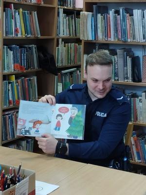 Dzielnicowy ze świąteczną książką zamiast notatnika